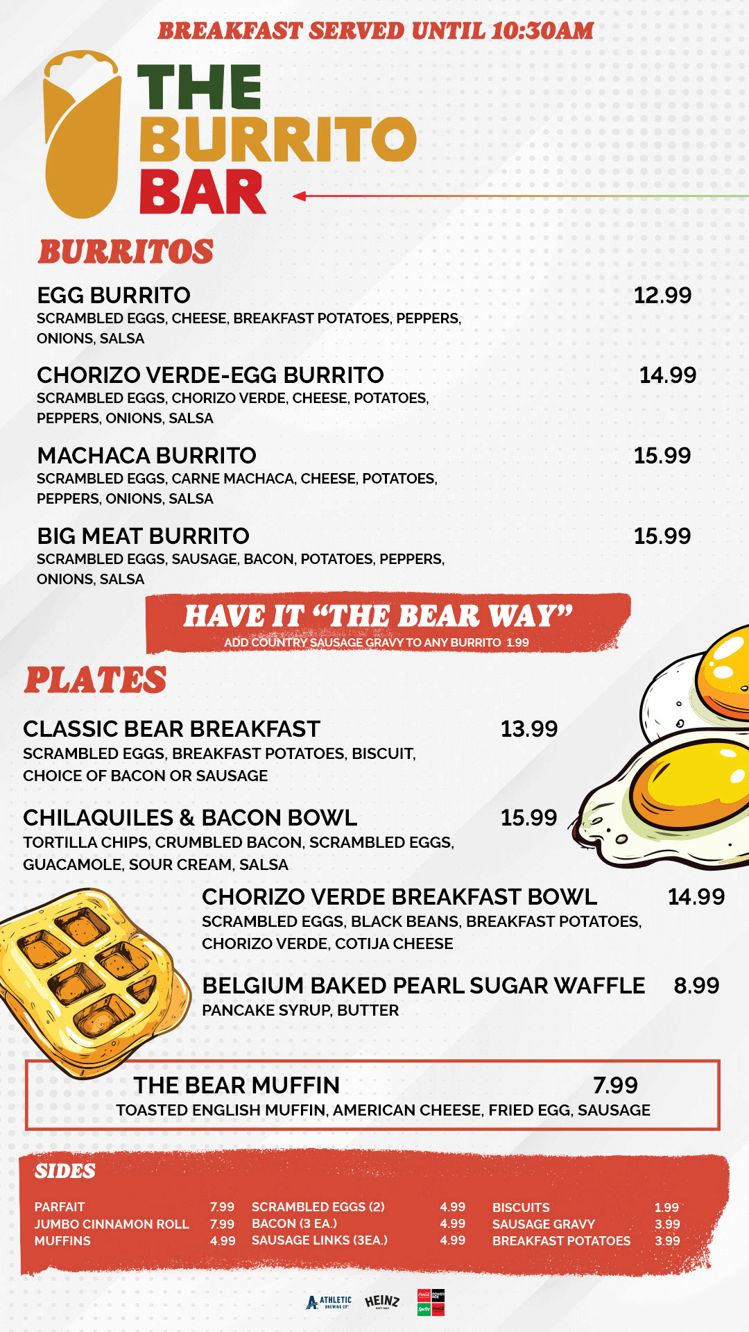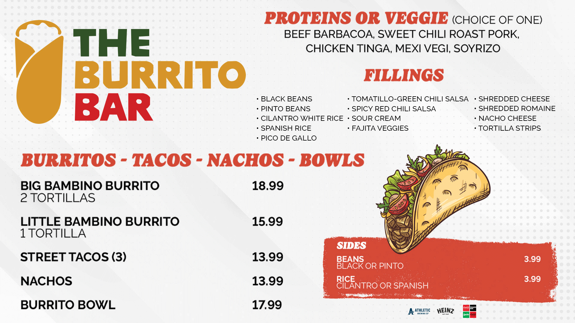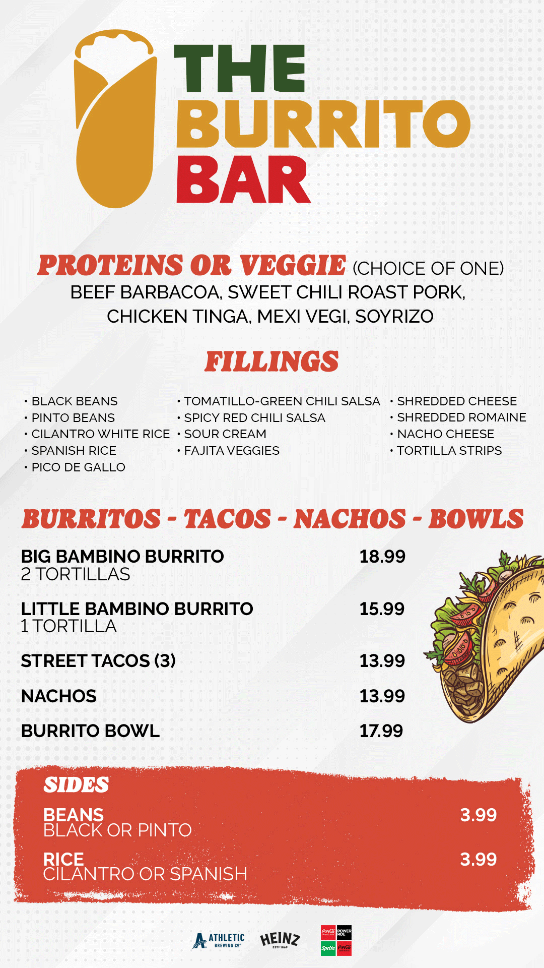 Home of The Big Bambino double-tortilla burrito, The Burrito Bar is your go-to spot for a flavorful breakfast or lunch. From fluffy scrambled egg burritos to nachos, salad bowls, and street tacos, you’ll fuel up in true slopeside style. Don’t miss out on the sweet chili pork – it’s slow-cooked overnight to perfection! rich-text, responsive-tableaccordion, accordion-placeholderLocation