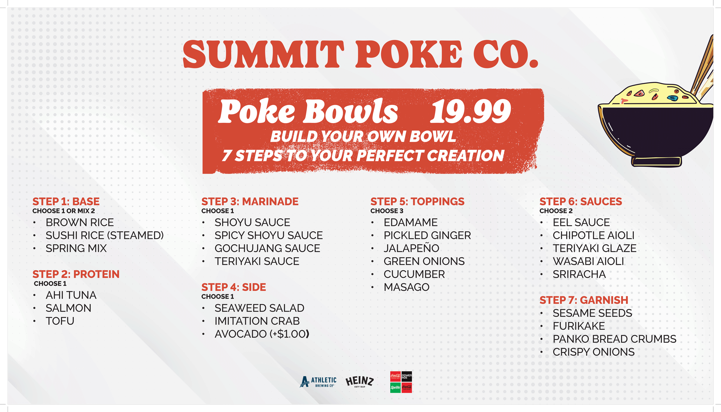 Summit Poke Co. delivers fresh, Pacific-inspired flavors right to the mountains. Whether you’re carving laps or soaking in the alpine scenery, step inside for a fully customizable poke bowl. Start with a rice or salad base, choose your protein, and mix in your favorite toppings for a satisfying, build-your-own meal that keeps you fueled for more time on the terrain. This new food installment resides in the former Garden of Vegan stall inside SoCal Marketplace. rich-text, responsive-tableaccordion, accordion-placeholderLocation