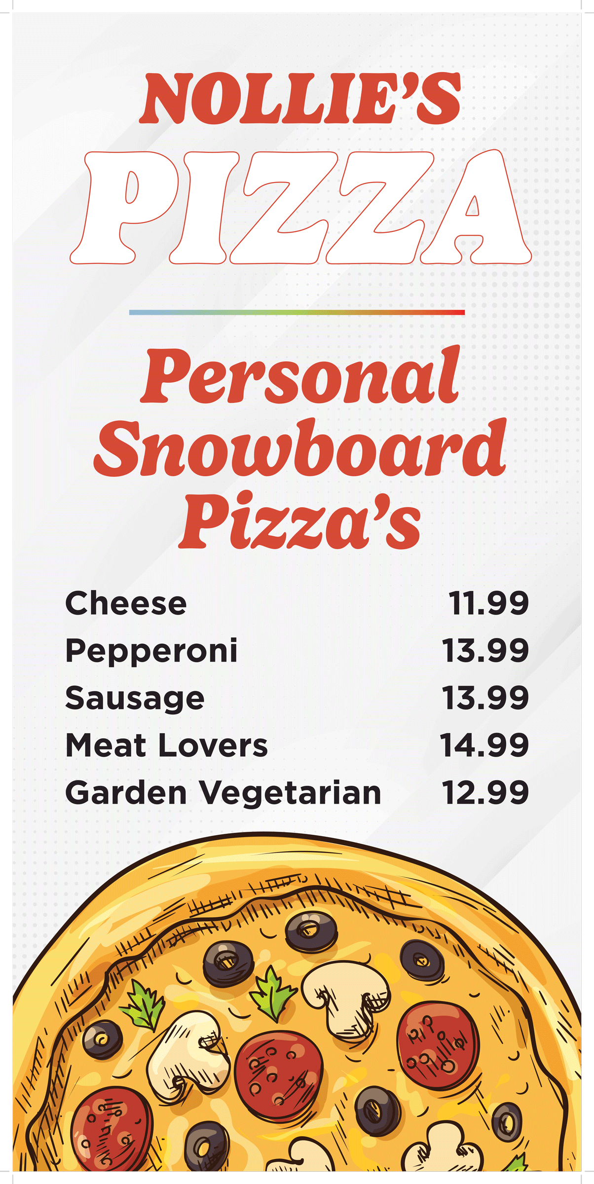 Nollie’s Pizza is the perfect slopeside stop for fresh, handmade pizzas. Made daily, the menu includes classic options like cheese, pepperoni, sausage, and veggie. Enjoy your pizza alongside a warm bowl of hearty soup, such as Ivar’s Northwest Clam Chowder, to refuel before hitting the hill again. rich-text, responsive-tableaccordion, accordion-placeholderLocation