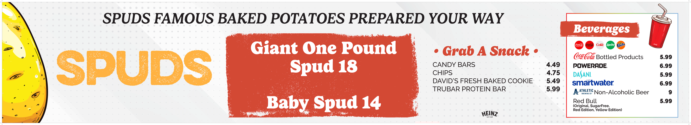 A day on the slopes calls for a warm belly of food and that’s exactly what you’ll get at Spuds. A delightful spot on the sun deck where you can enjoy piping hot potatoes loaded with your choice of delicious toppings. From the Giant One Pound Spud to Baby Spud, either option will leave you filled with just enough fuel to hit the slopes for some more alpine good times. rich-text, responsive-tableaccordion, accordion-placeholderLocation