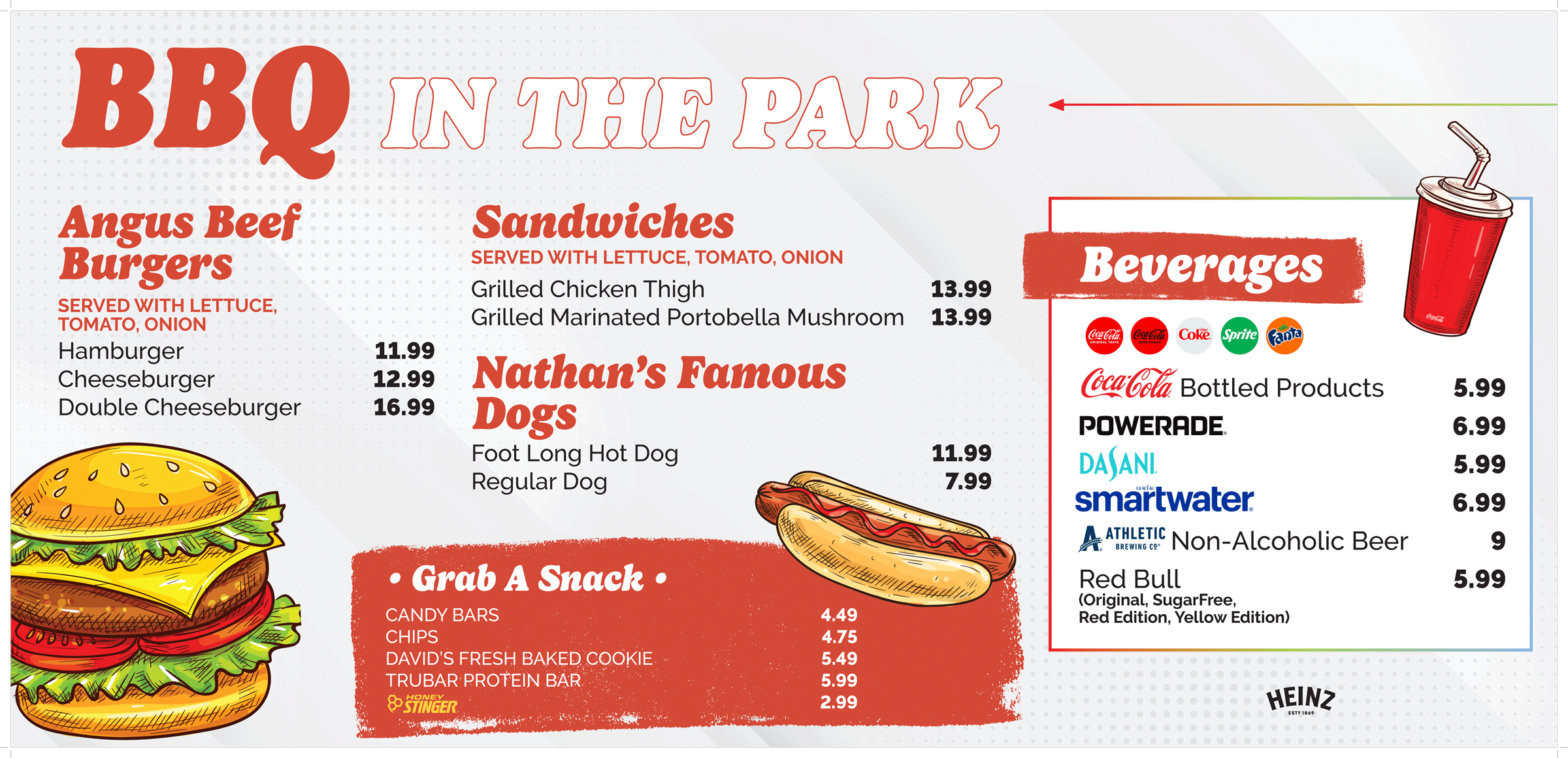 BBQ in the Park is the ultimate outdoor grill located at the heart of Bear Mountain, right on the sun deck. Enjoy juicy angus beef burgers, hot dogs, and a delicious Grilled Marinated Portobello Mushroom sandwich—this grill has something for everyone.