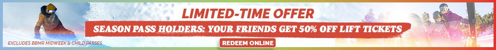 Big Bear Mountain Resort offers the best snow conditions, longest season, and most rideable terrain in SoCal.Season Nov Dec Jan Feb Mar Apr Season Total 2025-26 SV: 5"
